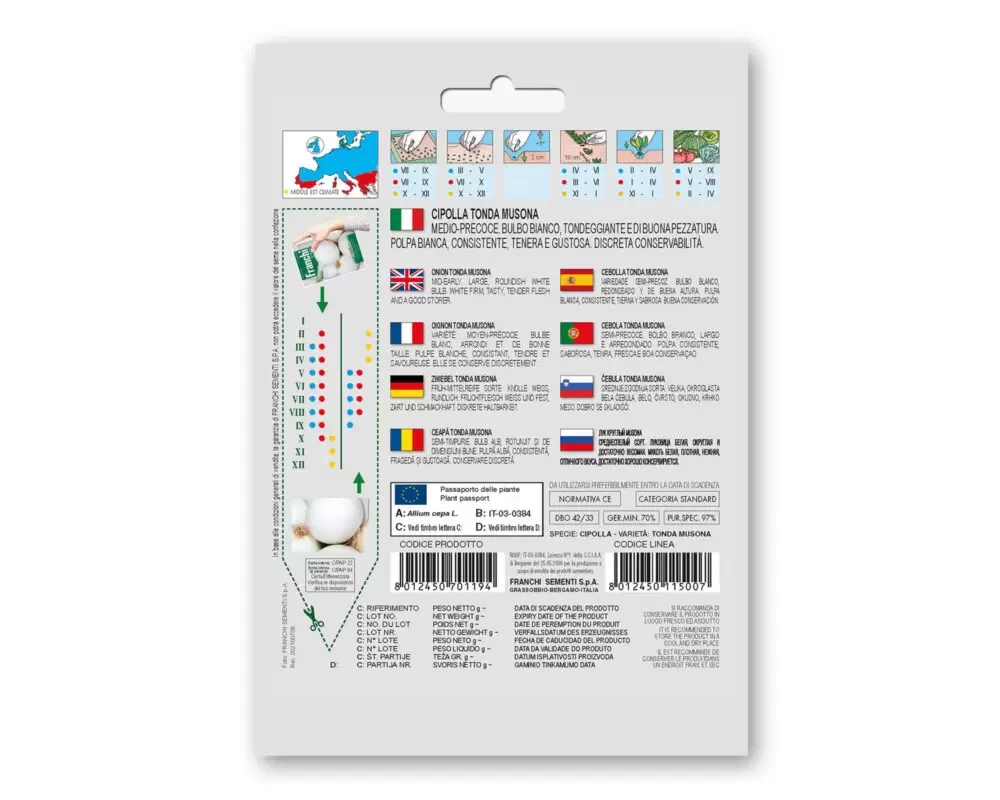 | Semi di Cipolla Tonda Musona – di FRANCHI SEMENTI. Medio-precise. Bulb Bianco, onegite e di buona Pesaturo. Polla Bianca, consistent, Tenera e Gustos. Discrete coobservability. |