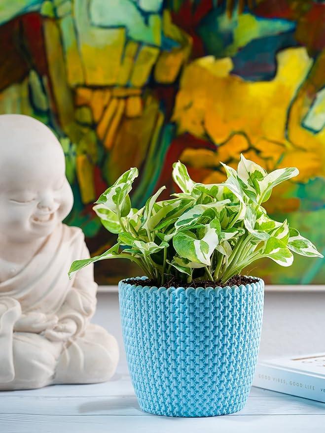 • Contents : Pack of 3 Blue Plastic Pot For Plants